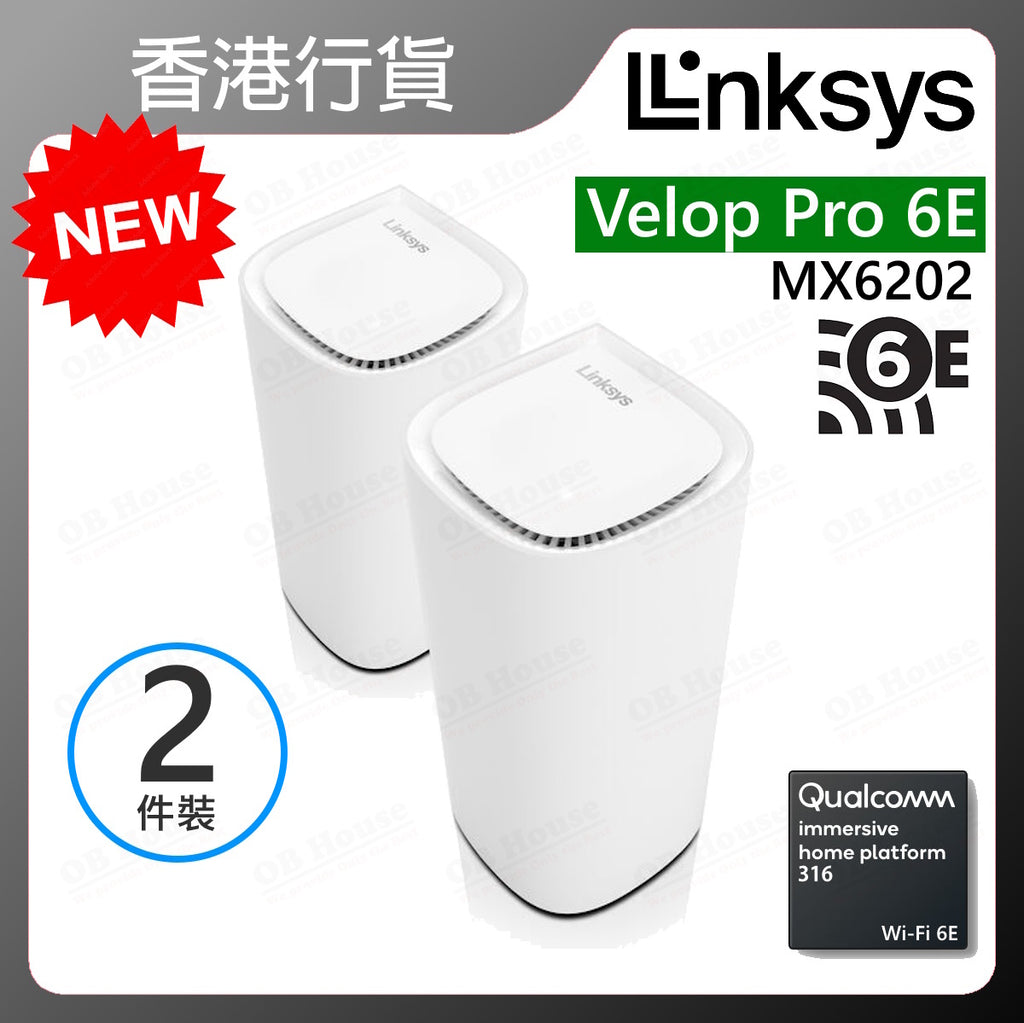 MX6201-AHLinksys Velop® Pro 6E 採用獨有的 Cognitive™ Mesh 技術,可為 WiFi 6E 提供無與倫比的覆蓋范圍。* 更快捷的連線速度、更廣泛的覆蓋範圍、一網多設備的優勢,為您帶來超凡的流媒體播放、下載或工作體驗。多用戶亦能體驗極速網路,告別「龜速」網路的煩惱。我們會幫您處理繁重的工作,讓您專注於維繫最重要的人際關係。